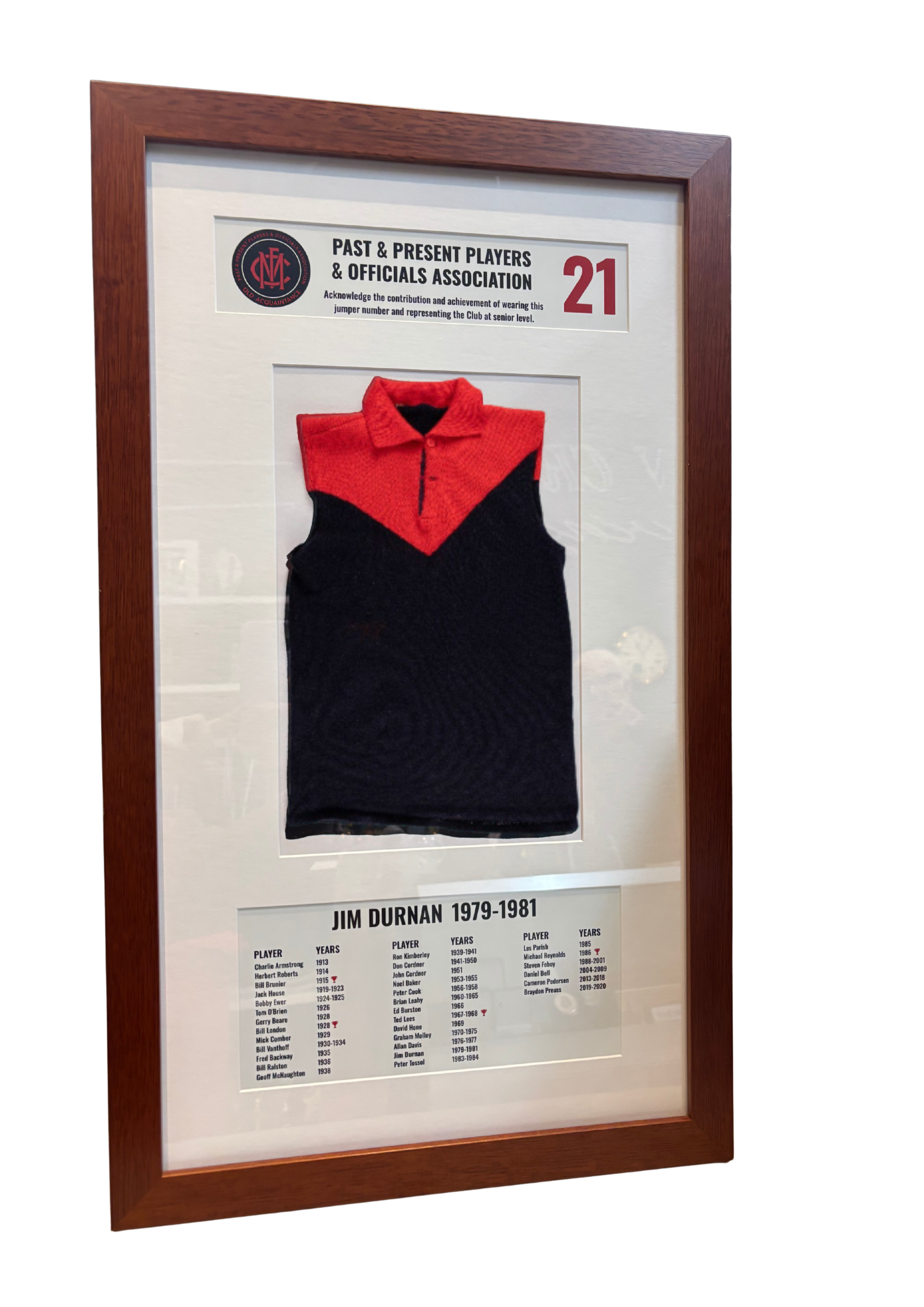 Don’t miss this opportunity to purchase a family heirloom. This exclusive, curated memorabilia piece is a fundraising initiative created by the Melbourne Football Club Past players and Officials Association. It celebrates the contributions and achievements of players who donned their jumper number and represented the Melbourne Football Club at the senior level.